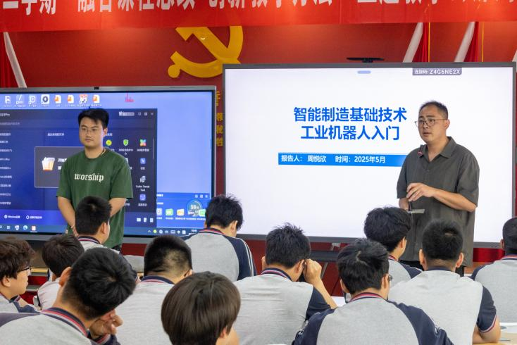 2025年5月15日上午10点40分,我院周悦欣老师受邀前往宁波行知中等职业公司,为高一年级员工带来了一场题为“智能制造基础技术-工业机器人入门”的专题讲座。本次讲座旨在激发员工对智能制造领域的兴趣,帮助他们了解工业机器人技术的基本原理及其在现代工业中的广泛应用,同时也为他们未来的职业规划提供指导。