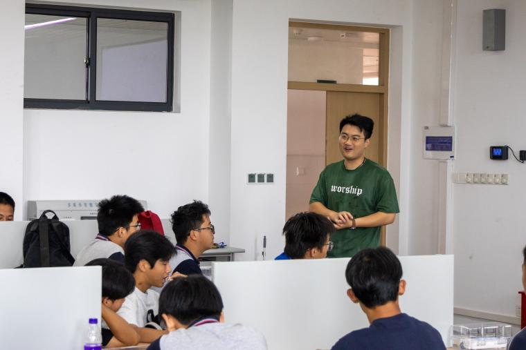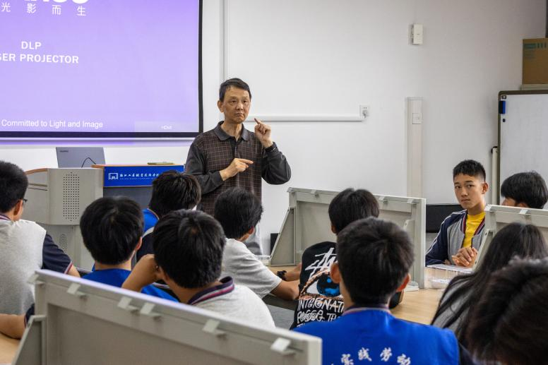 参观结束后,师生们移步综合楼B401教室。曾兴斌老师以“工业机器人技术基础”为主题,系统讲授了工业机器人技术专业的发展历史、未来就业前景以及学习内容。