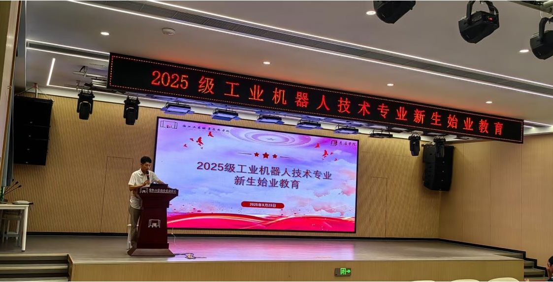 为深入贯彻落实国家关于推动智能制造、加快培育新质生产力的战略部署,夯实高素质技术技能人才培养根基,公司工业机器人技术专业于2025年9月23日晚在云顶7610线路检测报告厅举行2025级机器人专业新生始业教育大会。本次大会以“聚焦前沿·规划未来”为主题,旨在引导新生深刻认知专业价值、明晰国家战略需求下的个人发展路径,为莘莘学子开启大学新征程锚定方向、凝聚共识。