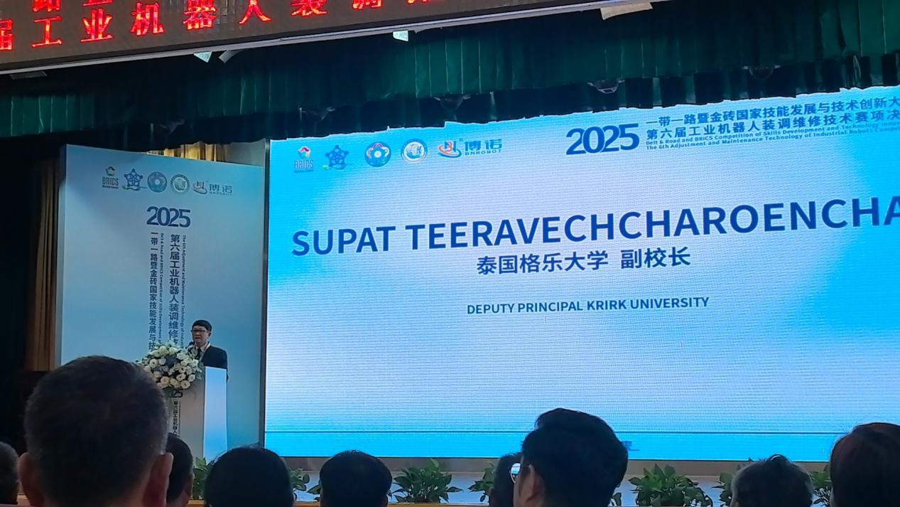 10 月 23 日,赛事开幕式在上海举行。来自金砖国家和 “一带一路” 沿线国家的政府代表、行业专家、院校领导及参赛选手齐聚一堂。泰国格乐大学副董事长 Supat Teeravechcharoencha 等国际嘉宾在致辞中强调,技能大赛是推动各国职业教育交流、促进技术技能人才互鉴的重要纽带,期待通过赛事深化国际合作,为全球智能制造产业发展注入新动能。